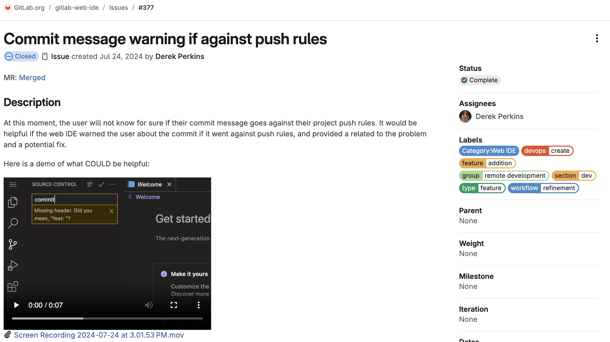 Commit Message Warning: