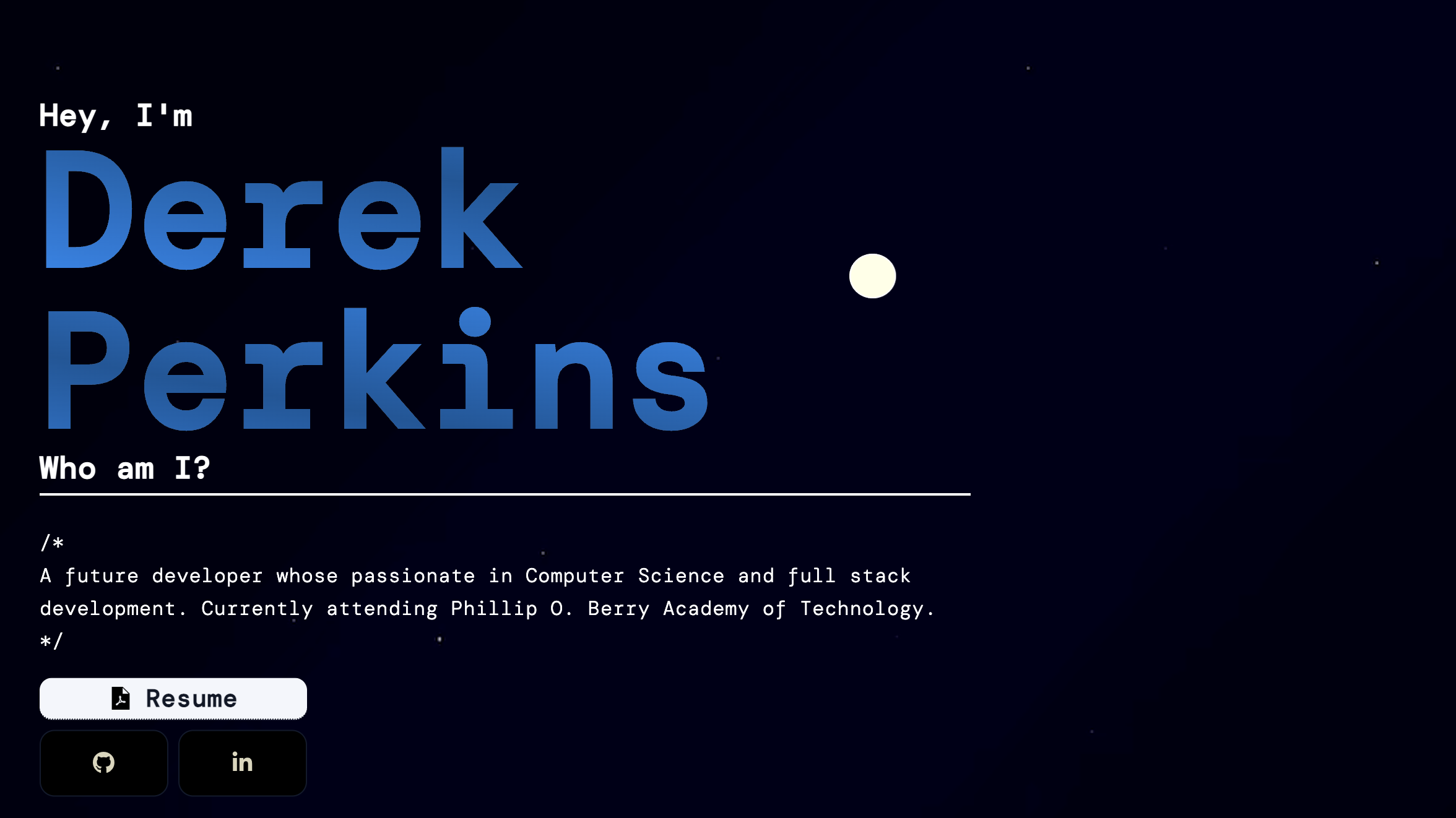 Developed portfolio while learning how HTML, CSS, and JavaScript work together as a Senior at Phillip O Berry in 2025.
